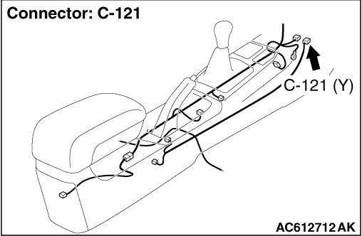 - Continuity between C-121 wiring harness side connector terminal No. 59 and body earth