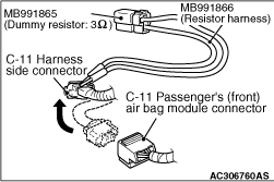 (3)Connect special tool dummy resistor (MB991865) to special tool resistor harness (MB991866). (4)