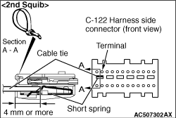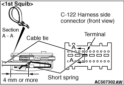 No. 7 and 8 (1st squib) and No. 11 and 12 (2nd squib), and then release the short spring. (5)Take the measurements below at the C-122 harness side connector.