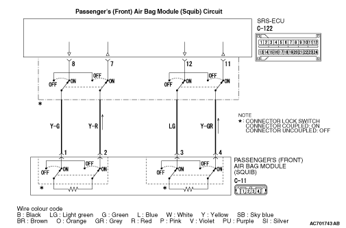 - Short circuit between terminals of passenger’s (front) air bag module (squib)