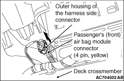 (2)Slide the outer housing of harness side connector in the arrow direction shown, and disconnect